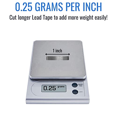 ✔️ WEIGHT & SIZE – Adds 0.25 Gram per inch weight. 1/4 inch x 197 inch for long time use. Lead tape is only 0.01 inch(0.5mm) thick and gives you flexibility for application.
