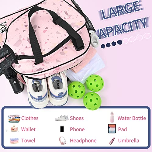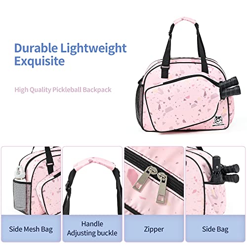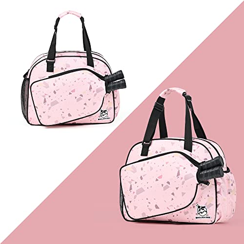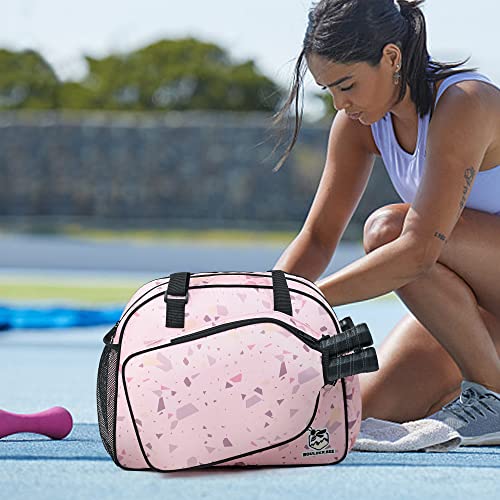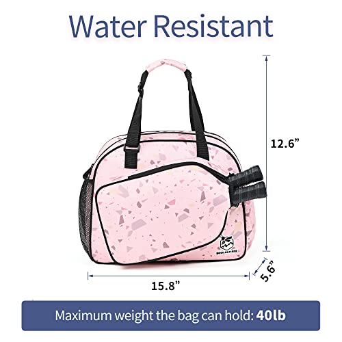 Premium Pickleball Bag: Boulder Bee pickleball bag is made of 420D oxford nylon cloth outer and 210D nylon interior. Durable and soft material with gliding smooth zippers. Great compact handbag for sports activity. It fits two paddles in the designated paddle holder and has a enough room to hold all your pickleball equipments. Designed for girls pickleball players!