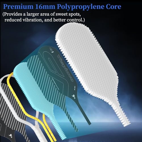 【16MM Polypropylene Lightweight Honeycomb Core】: 16mm Response polymer core provides reduced vibration & increases control, with a more sized sweet spot. The honeycombs compress for better feel while their cell shape & material prolong the life of the racket.