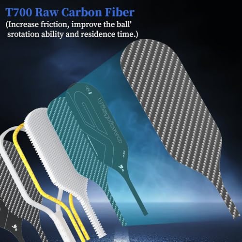 【T700 Raw Carbon Fiber Pickleball Paddle】: This surface of pro pickleball paddles was built using T700 raw carbon fiber, increases its friction, and prolongs the residence time of the pickleball on the racket face, harnessing the raw power with maximum spin & ball control.
