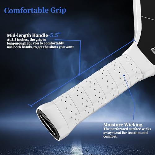 【Professional Advanced Racket Size】: Length 16.38″, Width 7.52″, Weight 7.9-8.1oz; Extend grip size Grip Length: 5.5″. Gift Set: You will get 1 pickleball racket, 4 grip straps, 1 pickleball paddle cover.