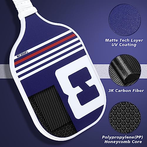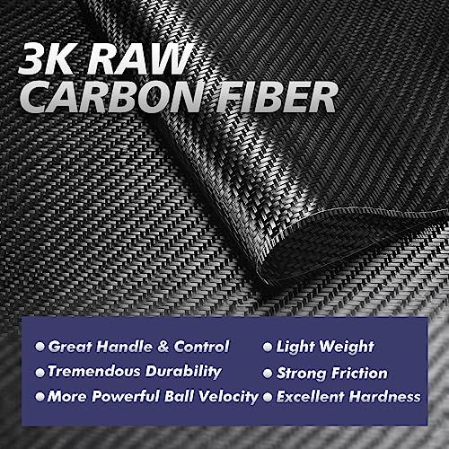 【3K Carbon Fiber Pickleball Paddle】:3K Carbon Fiber is raw weaving by at least 3000 fibers of carbon in the same area. This structure provides more hardness, power, and durable then other pickle ball paddle.