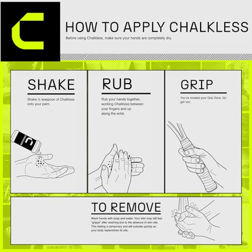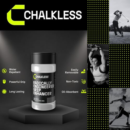 TARGETED OIL ABSORPTION & MOISTURE MANAGEMENT: Chalkless absorbs slippery oils on the skin’s surface while repelling moisture, creating a dry, controlled feel that supports grip consistency during training. Ideal weightlifting chalk and for bodybuilding, powerlifting, yoga, indoor climbing & racket sports, pole fitness, and gaming.