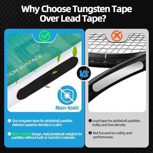 ✔ 【Non-Toxic & Secure】Safe and Non-Toxic Material, Made from high-quality tungsten, this pickleball weighted tape are a safe alternative to traditional lead tape for pickleball paddles,Engineered to stay firmly in place during intense rallies, our weighted tape resists peeling, moisture, and sweat