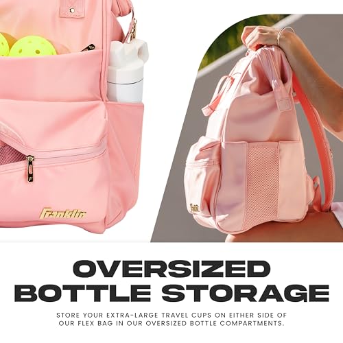 Hit the pickleball court in style with Franklin Sports’ Flex Pickleball Bag! This premium quality backpack has everything players need to conveniently store and transport paddles, pickleballs, court gear accessories and more with ease. Created with versatility and trend in mind, this backpack can be taken from the court to the airport! The large main compartment features (3) individual accordion style paddle pockets. This bag is also equipped with (2) zippered exterior pockets for gear or personal accessories like wallets, phones, keys and more. Carry your extra large water bottles on either side of our bag with our oversized bottle storage. Plus, a built-in luggage strap to throw over your suitcase if you are traveling and want to bring your gear along with you! Constructed from high quality materials, this premium pickleball bag is durable and built to last year after year. So if you’re ready to start hitting the pickleball courts with style, grab your Franklin Sports Flex backpack and start playing today!