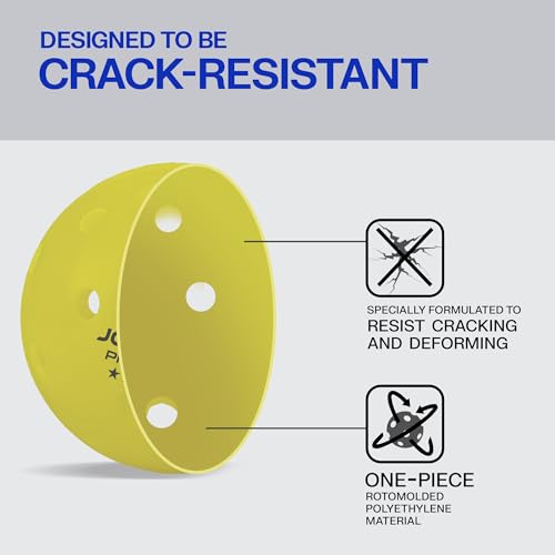 LONG LASTING DURABLE MATERIALS: The JOOLA Primo Ball is the ideal choice for tournament and recreational play; These official outdoor pickleballs are 74mm & weigh 26 grams; Designed for an exceptional and consistent bounce you can rely on during play