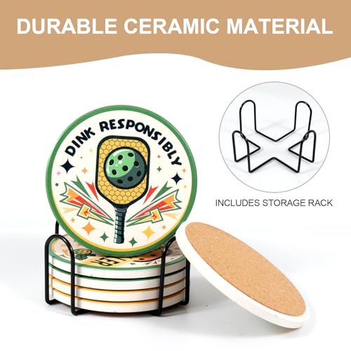 【 Unique Designs 】 These coasters feature six unique, original pickleball-themed designs created in California. Perfect for adding a fun, sporty touch to any space.