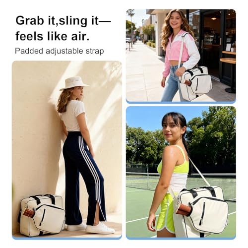 Shoulder-Cuddle Comfort:The padded, adjustable strap lengthens in a in one swipe—petite to plus-size, everyone gets a custom, cloud-soft fit that melts the load away. Four paddles, hoodie, water bottle and your backup flats feel feather-light; You can carry it from one shoulder to a crossbody, freeing your hands for phone,iced coffee, selfies, or that championship high-five.So you glide from car to court to coffee date feeling like you’re carrying nothing but your winning smile.