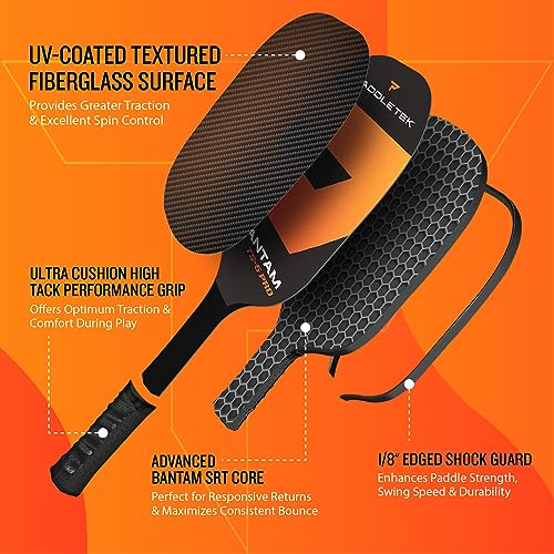 ULTRA-CUSHION HIGH-TACK PERFORMANCE GRIP: The Paddletek Bantam TS-5 Pro pickle ball paddles feature an ultra-cushion high-tack performance grip (Standard Grip) and high tack performance grip (Thin Grip) that provides superior control and comfort during long games.