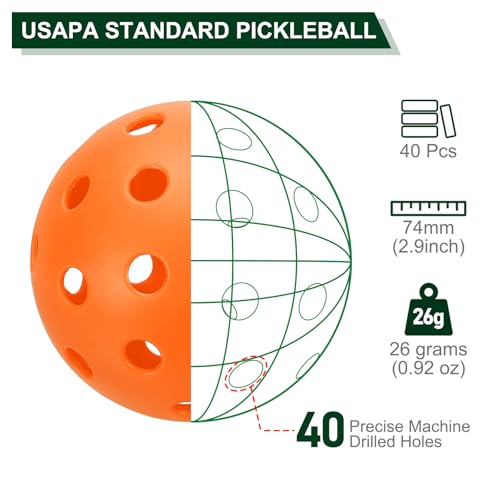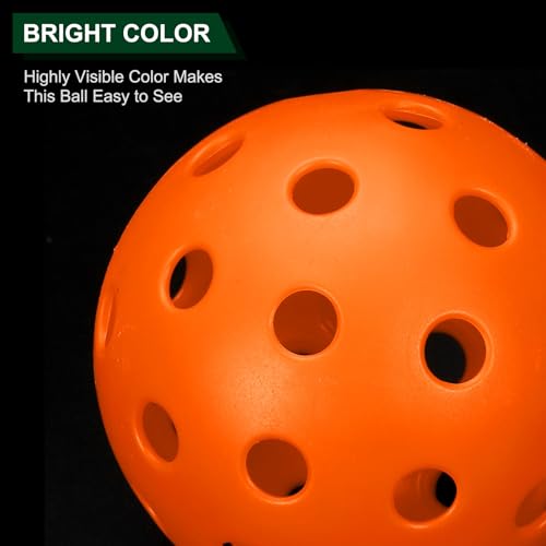 Pickleball Features: With a diameter of 74mm(2.9inch) and a weight of 26 grams(0.92 oz), and is suitable for all skill levels. And designed in eye-catching bright colors, the Outdoor Pickleball is easy to spot and hits the court fast, day or night.