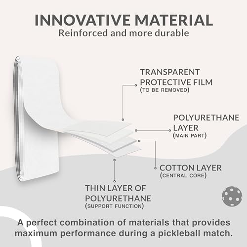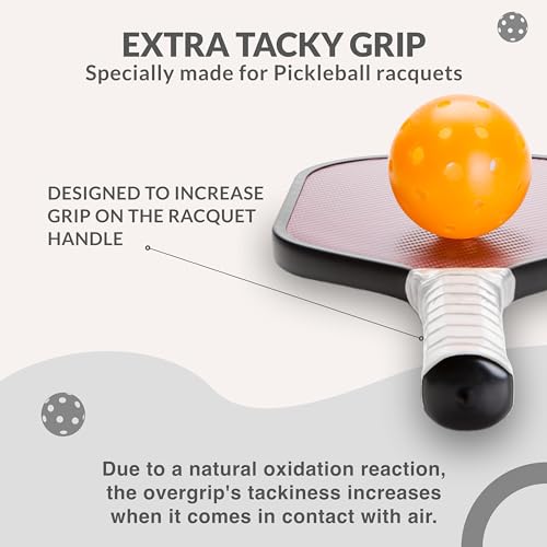 Grip tape performance: Our pickleball overgrip material is meticulously crafted to provide an unparalleled grip on your pickleball paddle handle. Engineered for excellence, experience an enhanced hold like never before. Due to a natural oxidation reaction, the pickleball paddle grip tape progressively increases its tackiness when exposed to air, ensuring a consistently secure grip even during intense matches.