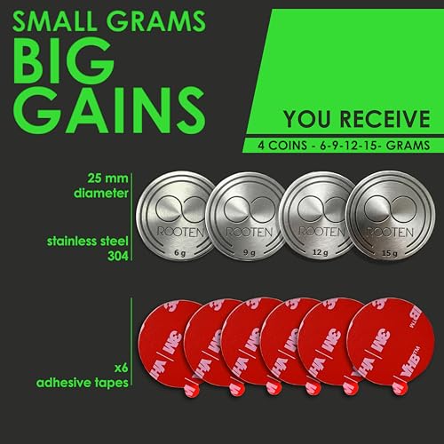 💥 4 PREMIUM STAINLESS STEEL CAP COINS (6g, 9g, 12g & Exclusive 15g). A complete set of four high-grade stainless steel cap coins for maximum customization giving you more balance options and allowing a truly customized pickleball paddle setup.