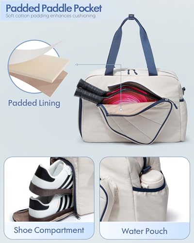 Smasrob Pickleball Tote Bag for Women with Exterior Paddle Pocket and Separate Shoe Compartment, Pickleball Bags with Wet Pocket and Detachable Strap