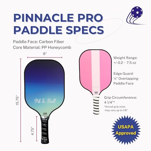 USAPA APPROVED & PREMIUM MATERIALS: Featuring F700 carbon fiber for strength and lightweight performance, the pickle ball paddles are built with a PP honeycomb core and ¼” overlapping edge guard to enhance durability and provide superior control. Perfectly designed to work seamlessly with your favorite pickleballs for optimal play.