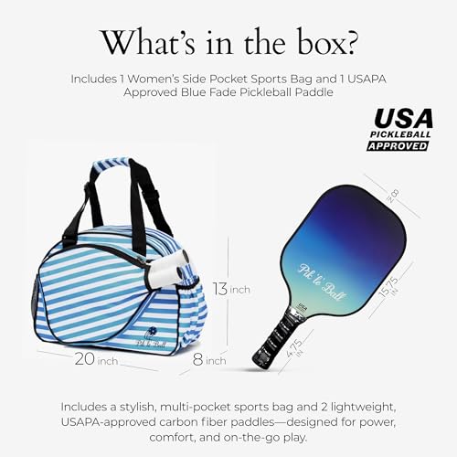 COMPLETE PICKLEBALL SET: This pickleball set includes premium paddles and a stylish pickleball bag. The lightweight, durable pickleball paddles offer powerful strikes and maximum maneuverability, while the spacious bag keeps your pickle ball accessories organized. Perfect for players of all skill levels, making storage and transport easy.