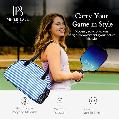 SUSTAINABLE PICKLEBALL BAG: This spacious bag, partially made from recycled ocean plastic, fits up to 2 paddles along with gear and pickleball shoes. It includes several pockets for phones, glasses, and more, plus a mesh water bottle holder and pickleball balls pockets for added convenience.