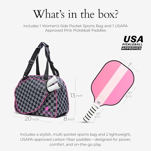 COMPLETE PICKLEBALL SET: This pickleball set includes premium paddles and a stylish pickleball bag. The lightweight, durable pickleball paddles offer powerful strikes and maximum maneuverability, while the spacious bag keeps your pickle ball accessories organized. Perfect for players of all skill levels, making storage and transport easy.