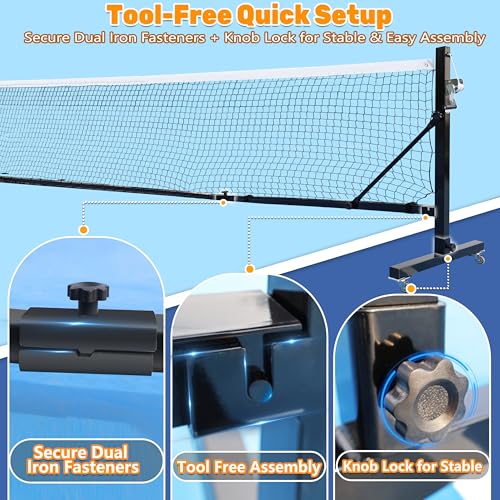 Easy Set Up:Enjoy hassle-free setup with pre-attached net ties and intuitive buckle clips—no threading or tools needed. The complete system stores and transports easily in the included carry bag, making it the perfect portable pickleball net for practice, travel, and events