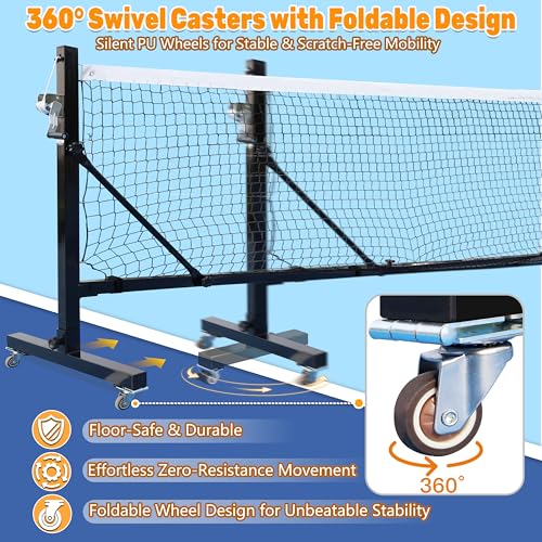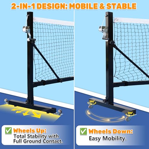 Professional Portable Pickleball Net:Our pickleball net Meet official tournament standards with this regulation-size 22ft wide, 36” high net.34″ center height, Featuring heavy-duty locking wheels,Roll Anywhere for indoor or outdoors- Integrated Heavy-Duty Wheels & Handle for True Portability,Help you win at any court competition