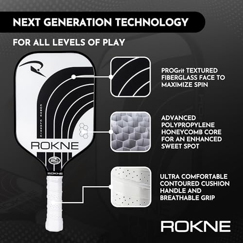 ✅ USAPA APPROVED, SUPER SWEET – The ROKNE Curve Classic is USAPA approved for tournament play. The polypropylene honeycomb core technology enhances the pickleball paddle’s sweet spot and helps eliminate dreaded mishits. The rough textured ProGrit fiberglass face generates optimal friction to ensure maximum spin for your best pickleball shots. Transform your game with this USAPA approved racket and challenge the best players on the pickle ball court.