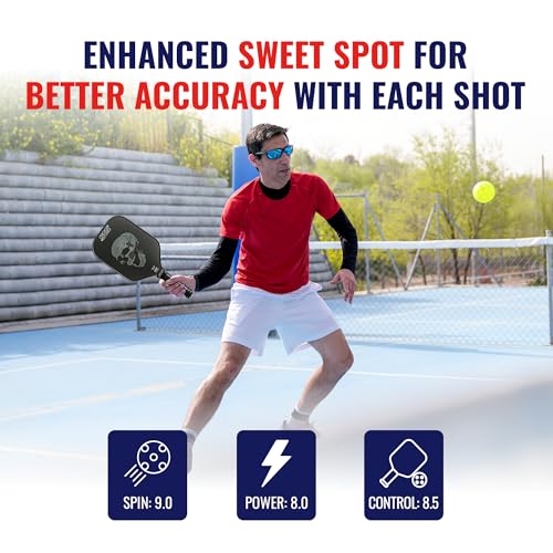 LIGHTWEIGHT, DURABLE CONSTRUCTION – Built with a 13mm polypropylene core for long-lasting durability and lightning-fast response. This carbon fiber pickleball paddle is made for quick hands and extended play.