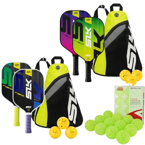 Save EVEN MORE by bundling together the SLK Neo Fiberglass set, the SLK Neo Graphite set, and a 12 pack of cutting edge Selkirk Pro S1 Pickleball balls