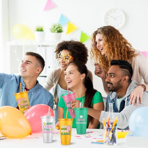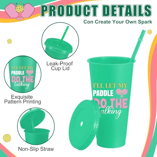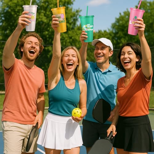 Generous and Colorful Set: elevate your family gatherings with this dinkball cups bulk set of 24 reusable cups; Each cup, featuring perforated plastic dinkball balls and rackets, is perfect for sports lovers; This variety of colors makes a delightful dinkball gift and entertains guests of all ages