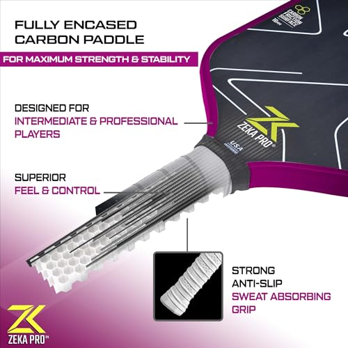 REVOLUTIONARY PROPULSION CORE: Dual foam layering delivers both explosive power on drives and plush control on dinks, creating a perfect all-court performance paddle. T700 RAW CARBON FIBER FACE: Textured surface creates topspin, backspin, and sidespin with lasting durability ENHANCED CONSISTENCY: 16mm honeycomb + foam reduces vibration, enlarges sweet spot, and boosts stability THERMOFORMED DESIGN: One-piece build adds pop and strength. ERGONOMIC GRIP: Anti-slip handle ensures comfort.