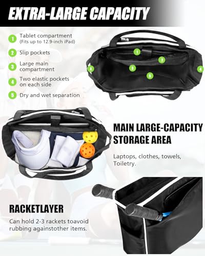 【Versatile Sports & Daily Carry】 – Ideal as a tennis gym bag, pickleball tote, or sports duffle bag for workouts, practice, or daily activities.