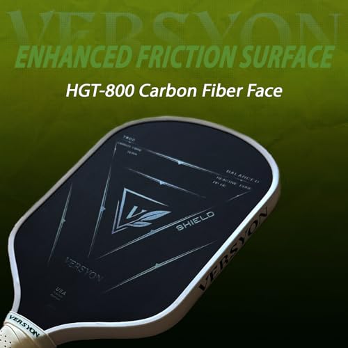 Experience the perfect blend of speed, control, and comfort with the Shield Pickleball Paddle by Versyon. Whether you’re new to the court or a seasoned competitor, this USAPA approved paddle is designed to elevate your game thanks to our advanced materials and thoughtful engineering. The high-grade T800 carbon fiber face delivers a striking surface that enhances responsiveness, improves dwell time, and gives you the edge on fast-paced shots. Paired with an advanced polymer honeycomb core, our paddle offers optimal vibration dampening and a quieter, softer touch – ideal for precision play. Our ergonomic Shield Grip is crafted for performance and endurance. The 4 1/4 inch handle is moisture-wicking, tacky for a secure hold, and flared slightly at the end to minimize hand fatigue during intense rallies. Designed with a carbon fiber frame and shaft, the Shield paddle weighs 8.1 ounces with even weight distribution to help you move quickly without sacrificing control and power. Its sleek black profile adds a professional look, and it comes with a softcover to keep your racket pickleball-ready. At Versyon, we are committed to “Ever Evolving” – crafting high-performance pickleball equipment that meets the demands of all skill levels. BUY NOW and step onto the court with confidence and control using the Shield Pickleball Paddle from Versyon