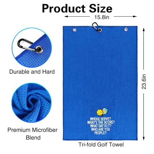 Humanized Design: Designed with a three-fold center ring and carabiner clip, the towel can be easily fixed on a pickleball bag, belt loop or pickleball cart to prevent loose clip and lost towels, it is convenient to carry and easy to use.