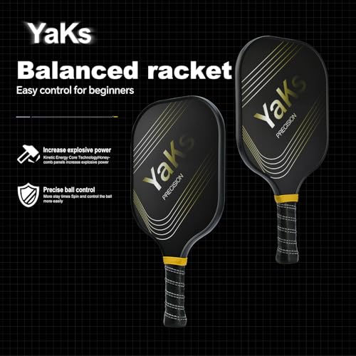YAKS Pickleball Paddles Set of 4 or 2 Rackets – Professional Fiberglass Surface with Honeycomb Core – Lightweight Design for Precision & Enhanced Impact Absorption | High Spin & Powerful Shots