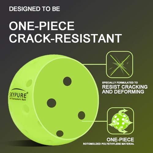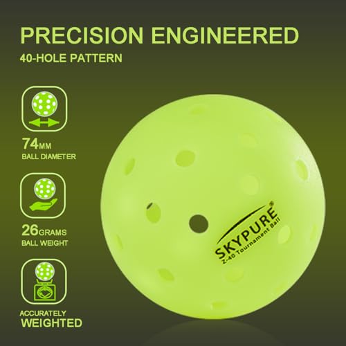 SKYPURE Z-40 Tournament ball is the market’s highest grade Pickleball ball, One-pice molding,High-Visibility Bright Green, 40 Hole Textured Surface for Consistent Bounce, Indoor/Outdoor Use, For All Skill Levels, More Durable, More Precise, More Professional, For All Style Pickleball Paddle & Court, And for Training and Tournament