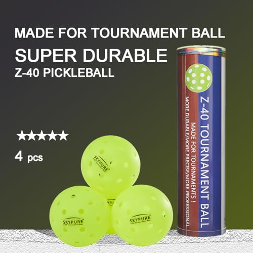 Skypure Sports’ Z-40 Pickleballs are made for premium play and performance and The quality standards are fully adhered to the Official Pickleball of the US Open Pickleball Championships and of USA Pickleball! Designed with precision-drilled holes and constructed from durable polyethylene, the Z-40 Tournament outdoor pickleballs are built to outperform and outlast other pickleballs on the market. The 40 holes on each pickleball ensure steady flight patterns and reliable spin on every ball for a consistent feel to your pickleball games. The ultra-durable polyethylene roationally molded one piece construction prevents denting and cracking even on outdoor courts, so you can keep playing all season long. These Z-40 Tournament pickleballs have also been rigorously tested for reliable bounce and spin, so you can make the perfect shot. Plus, the vibrant, neon coloring makes it easy to track the ball through the air for increased visibility on all court surfaces. Designed according to USA Pickleball (USAPA) size and weight regulations, these official size outdoor pickleballs are perfect for recreational and tournament play. The Z-40 Tournament is used as the ball of choice at hundreds of tournaments nationwide each year, so practice with the ball you compete with-grab your set of Z-40 Tournament pickleballs today!